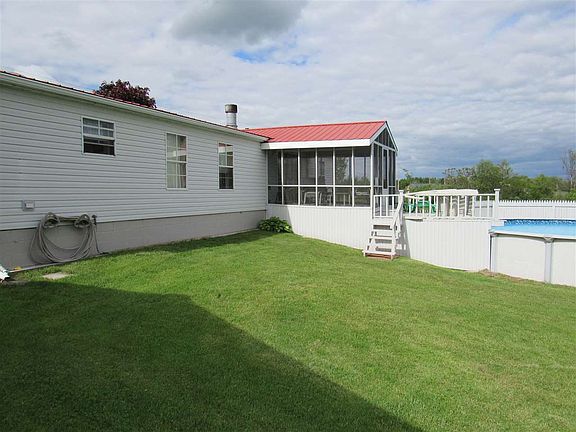Are you looking for some privacy? Look no further... this immaculate 3 bedroom, 2 bath manufactured home is just 5 miles from town but offers all of the privacy you could want. This home offers a large kitchen with nice Oak cabinetry, a center island and beautiful skylights, a breakfast area off the kitchen, large dining room/living room combination with corner gas fireplace and a beautiful Pennsylvania House dining room table and tea cart that the owner will leave. There are 2 bedrooms and a full bathroom at one end of the home and a nice size, private master bedroom and bath with corner tub and separate shower. Off the living room you'll find a nice screened in patio which leads out to the back deck and above ground pool (with 3 year old liner). The large 28' x 60' garage has a 16' insulated door leading to the 28' x 40' section of the garage that is insulated and heated by a propane furnace and offers overhead storage space. The second section of the garage is a great spot for all of your lawn equipment, etc. and has a 7' overhead door, included work benches and is wired for 120V/220V. In addition to these great features, there is also an insulated dog house inside the garage and a fenced in cement area off the garage for the dog, should you need it. There is an additional 8' x 12' storage building that is included. There is a newer metal roof on the house and windows have been replaced in the kitchen/breakfast area. This home has been very well maintained and offers SO MUCH. Owner has an additional 2.3 acre lot across the street that is available for purchase.