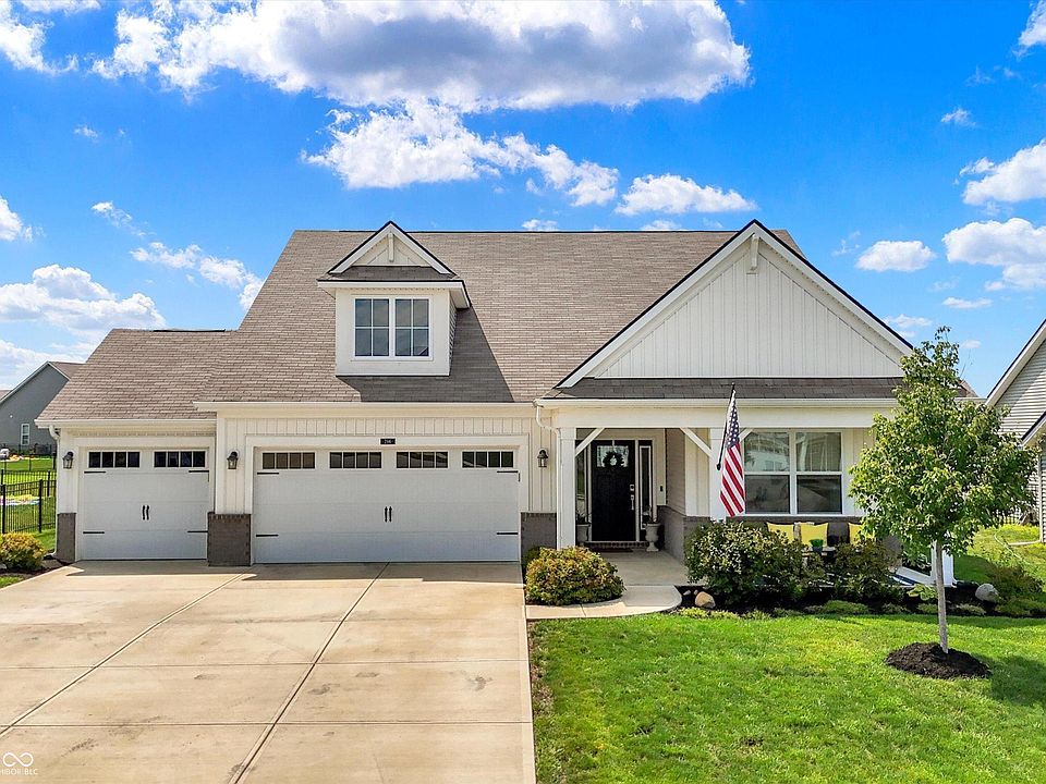 Welcome Home to the Desirable Lakeside Community of Cicero You will love this Golf Cart Friendly community that offers the Small Town vibe with Family owned Boutiques, Restaurants and Just steps to Morse Lake. Nearly 2100 Sq Feet, This Spacious Ranch Home with Bonus room and Finished 3 Car-Garage is Only 4 years old. Upgrade lot Overlooking the Peaceful pond, This home still shows like New.. so WHY BUILD? This home offers tons of Charm and Curb Appeal from the Covered Front Porch the Craftsman style elevation. You will LOVE the Open floor plan that creates a sense of Spaciousness while perfectly blending Modern living and comfort. The Spacious Gourmet Kitchen with upgrade appliances, solid surface countertops, under cabinet lighting and custom glass tile backsplash, this Kitchen is designed for both functionality, style and offers ample storage and a timeless aesthetic. You will enjoy hanging out around the Lrge Kitchen Center Island that provides plenty of space for meal preparation, casual dining and ideal for entertaining. Imagine starting your day in the Spacious primary bedroom, where a tray ceiling adds an elegant touch. The convenience of an ensuite bathroom provides a Private and Luxurious experience, complete with a Double vanity and a Large Spa like tiled Shower. Check out the Large Bonus/family room that offers plenty of space for workout equipment with plenty of seating for that Fun Movie Night with Projector Included! Relax on your Large Back Patio Space that provides extra outdoor living space while watching the Stars at night.