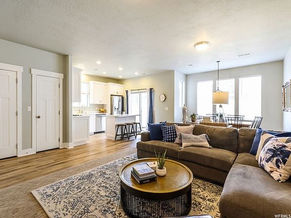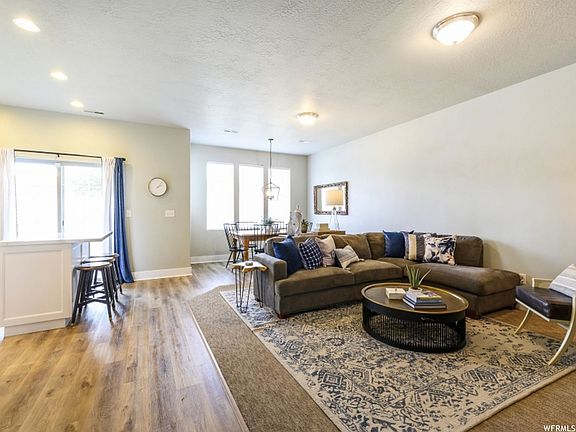 Beautiful, coveted end unit now available! - 3 Bedroom, 2 1/2 Bath, and 2 car garage - Boasts updated kitchen. Elegant quartz island, white cabinetry, stainless appliances, and new flooring create a contemporary and sophisticated feel. - Sliding glass doors lead to patio off kitchen for easy barbecuing. - Open floor plan with newer carpet throughout, tasteful interiors, and beautiful lighting. - The spacious, relaxing master suite opens to a covered deck. - Upper level also includes a delightful bonus room area and charming bedrooms. - Tucked away, yet seconds from shopping, entertainment, services, and easy access to I-15, I-215 & Legacy Highway. -Service animals must have written consent from doctor. No cats.