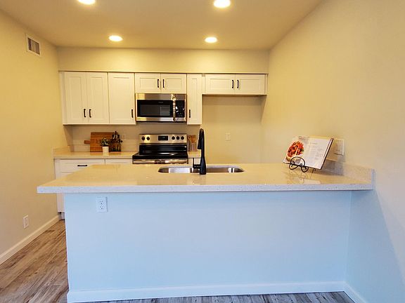 WOW! This home has recently been remodeled by a licensed contractor. The home features fresh paint, new flooring, and updated fixtures throughout. Walk in to a spacious living room filled with natural light. The kitchen has been completely redone with new white cabinets, quartz counter tops, stainless steel appliances, and new hardware. All bedrooms boast new carpet, fresh paint, and new light fixtures. Both bathrooms have been updated with new vanities, counter tops, and fixtures. Laundry in unit! Large covered patio!