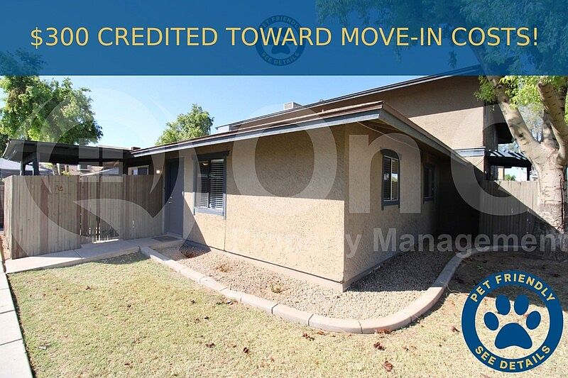 ** $300 CREDITED TOWARD MOVE-IN COSTS! ** **ENJOY $500 OFF FIRST MONTH'S RENT WITH QUICK MOVE IN 726 SQ FT! 2 bedroom, 1 bath townhome in Chandler Meadows. Desirable single story floor plan! Tastefully updated interior. Charming kitchen with included appliances! Open concept living/dining. Neutral interior with custom tile flooring in all the right places! This home offers 2 nicely sized bedrooms. Full bath! Blinds. Included washer/dryer! Enjoy a private patio, covered parking space, & storage space. Desirable unit, across from community pool + greenbelt! Pet Policy: Dogs and Cats Allowed with the following exceptions: Up to 1 dog MAX & cats will be considered upon approval! (11-40 lbs). $150 Refundable Pet Fee per pet. A $35 Pet Rent per month per pet will be added to the rental amount (when applicable). (Service Animals - Please refer to the Resident Qualification link below) This home is managed by On Q Property Management.