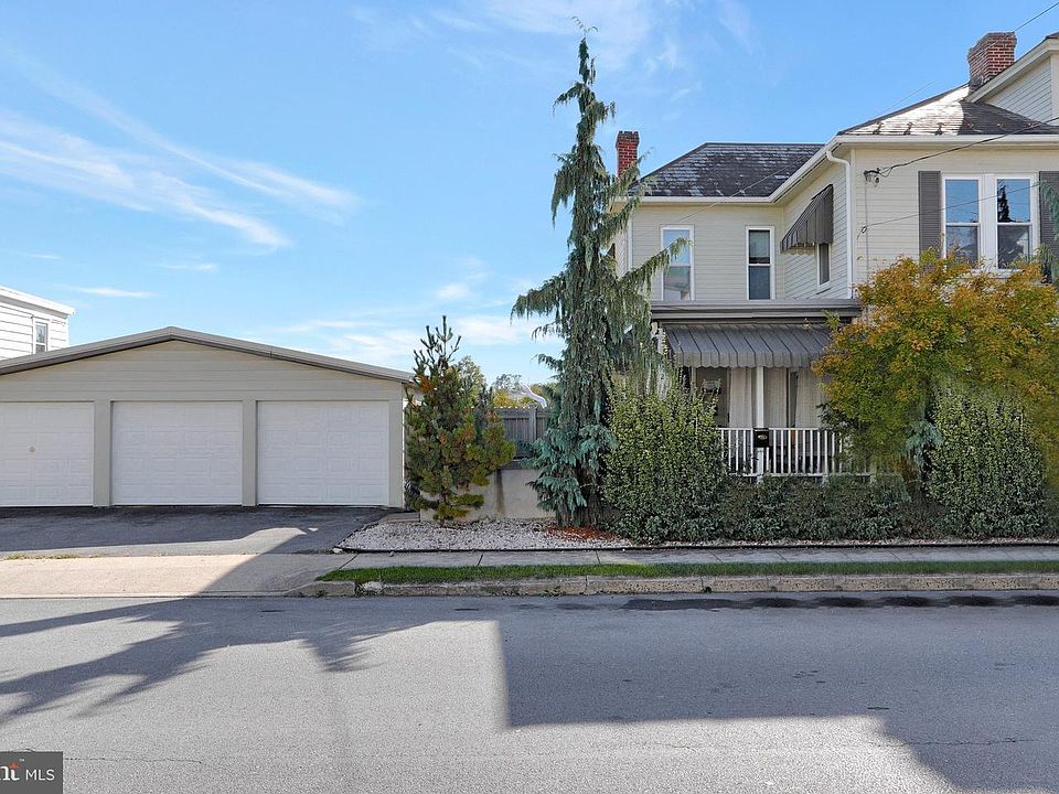 Welcome to 286 W Queen St. This property is conveniently located in the Borough of Chambersburg. Nestled on a quaint, quiet, street this property offers off street parking both in the driveway or the detached 3 car garage! Behind the mature landscape and trex fence you will find a patio and covered porch...perfect for entertaining. Enter into the eat in kitchen or continue through to the spacious dinning room. The living room is highlighted by beautiful columns and features lots of windows for natural light. As you continue upstairs you will find 2 spacious bedrooms, a laundry room, and bathroom. Storage can be found in the attic or basement. Schedule your showing today!