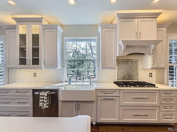 Absolutely breathtaking remodel in highly coveted Castle Pines! Nestled against a serene greenbelt and surrounded by mature pine trees, this home offers a private, picturesque setting that’s hard to come by. Step inside and prepare to be impressed by the show-stopping kitchen - a true chef’s dream and an entertainer’s paradise. With dual islands, a farmhouse sink, prep sink, sleek shaker cabinetry, stainless steel appliances, and gorgeous quartz countertops, this kitchen is as functional as it is beautiful. A spacious butler’s pantry adds even more storage. Soaring windows flood the home with natural light, especially in the inviting family room. Designer touches are found throughout: rich wood floors, elegant plantation shutters, tall baseboards, updated lighting, brand new carpet, and fresh interior paint. The grand staircase makes a statement from the moment you walk through the front door, while the flexible formal dining room can easily serve as a formal living room. Upstairs, the oversized master suite is a peaceful retreat, complete with vaulted ceilings and enough space for even the largest bedroom sets. The newly remodeled ensuite bath feels like your own private spa, featuring a stand-alone soaking tub, frameless glass shower, and dual vanities. The walk-in closet with a cedar floor and built-in organization system is the icing on the cake. 3 additional bedrooms - 2 of which are generously oversized - and an updated guest bath round out the upper level. Downstairs, the basement offers a spacious great room (perfect for a rec area, home theater, or playroom), a 5th bedroom, full bath, and storage room. Outside, enjoy the newly installed maintenance-free deck — the perfect place to unwind or entertain. Soak in the hot tub under the stars, or make use of the large backyard for play, gardening, or relaxing in nature. Additional perks include a tankless water heater and an oversized two-car garage with a bonus bump-out for tools and toys.