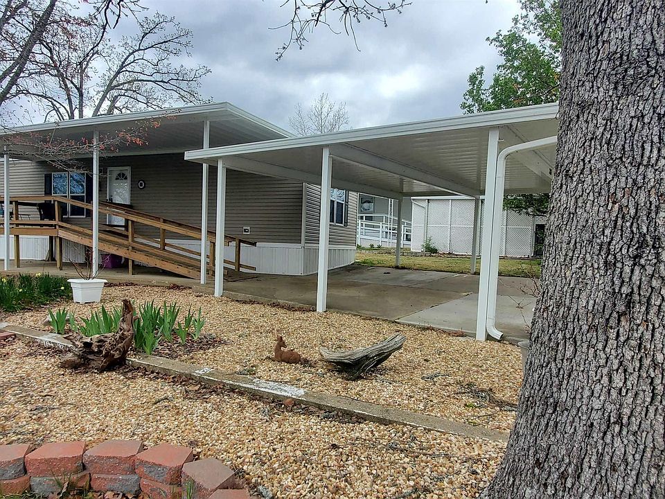 Very clean, like new 2 bedroom/2 bathroom, 2019 mobile home. Ready to move in! Has 2 nice covered decks with wheel chair ramps, 2 car attached carport, nice lofted storage shed, beautiful rock accents in dining/kitchen area, nice big walk-in closet in master bedroom. Back yard view of cleared pasture and view of the pond just down the hill from home. Enjoy this nice peaceful well maintained 55+ mobile home park for your very own neighborhood.