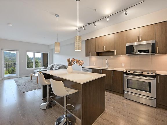 Discover this stunning, like-new condo in the 2012-built COHO building, featuring a bright, open layout and a spacious 110 sq. ft. west facing balcony with breathtaking valley views. Step inside to find 9 ft. ceilings, wide plank flooring, and newly recently replaced in-suite laundry. The modern kitchen boasts oak veneer cabinetry, quartz countertops, a new stainless steel Frigidaire appliance package, and a generous island with ample storage. The spa-inspired bath offers a deep soaker tub and sleek shower-head. Perched on a scenic highland, COHO provides direct access to nature, trails, and the ocean—perfect for an active lifestyle—while being just 15 minutes from downtown Victoria. Bring your patio furniture to enjoy the afternoon sun and sunsets. Secure underground parking, storage, and pet-friendly policies with no size restrictions. There is also a rental suite unit for guests!