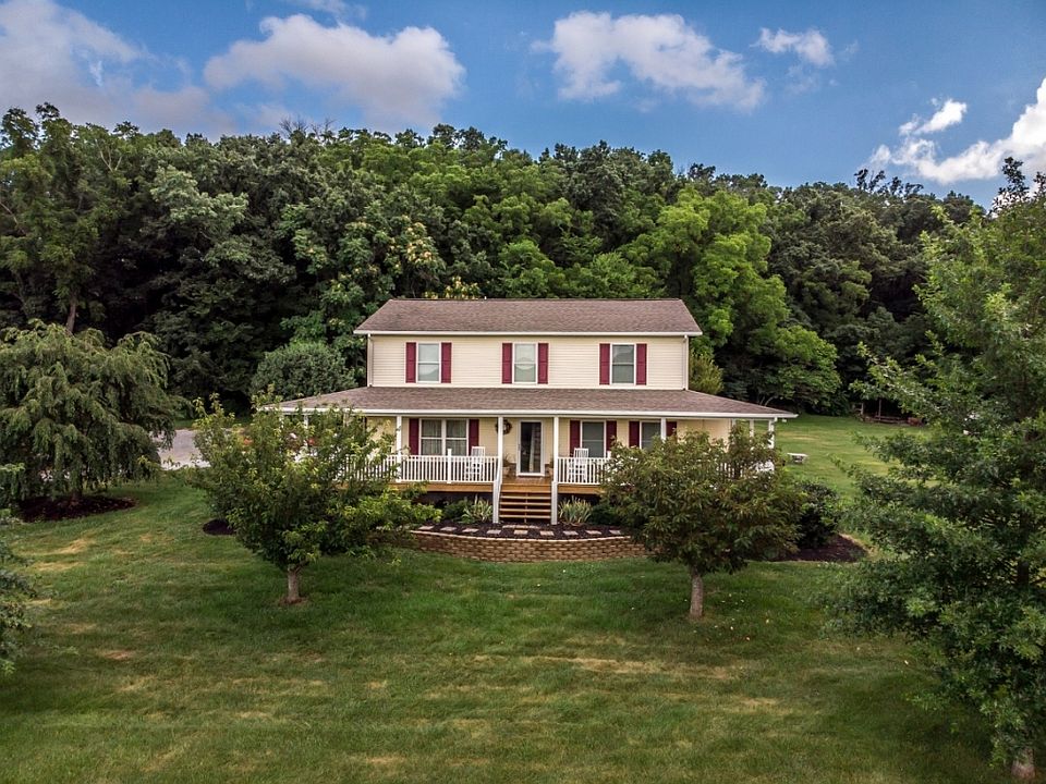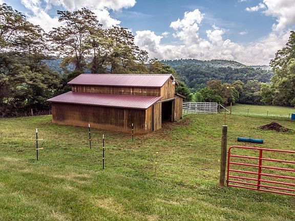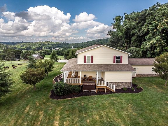 Beautiful 2 Story home situated on just over 13 acres with beautiful country surroundings and mountain view. Home features 5 BR, 2 1/2 baths, hardwood flooring, and washer and dryer on both levels. Open kitchen and dining area with kitchen island and all appliances included. Main level master bedroom with new master bath featuring large walk in tile shower and separate claw foot tub. Four bedrooms upstairs all with walk in closets. Living room with hardwood flooring and gas fireplace leads out to the great wrap around porch. Outside features a 3 car attached garage, a large 3 car detached garage with oversized doors, and a barn for the livestock. A must see home in great condition.