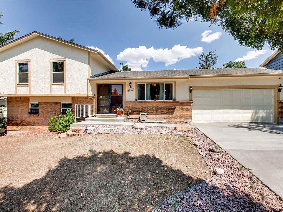 Welcome home to this recently remodeled, 2,000+ square foot, 4 bedroom 3 bath, Tri-level home in Vista Grande. A major renovation on the main level leaves an open great room and nearly brand new open concept kitchen with stainless steel energy efficient appliances, cherry cabinets, granite countertops and tile backsplash. Sunlight pours in from south-facing front vinyl windows. This positioning during winter months makes shoveling snow from your brand new concrete driveway & front walk a nonexistent task. The Master has a walk-in closet & 3/4 ensuite bathroom. Bedrooms have new vinyl windows with mountain views. Vanities in all bathrooms have granite counters and cherry cabinets, updated mirrors, light fixtures, faucets, shower heads and tile floors. Dimmer switches have been installed throughout with energy efficient LED bulbs in the fixtures. 2 new vinyl patio doors. In the backyard resides a 10x18ft shed with multiple wooden decks and a new concrete patio with a view of Pikes Peak.