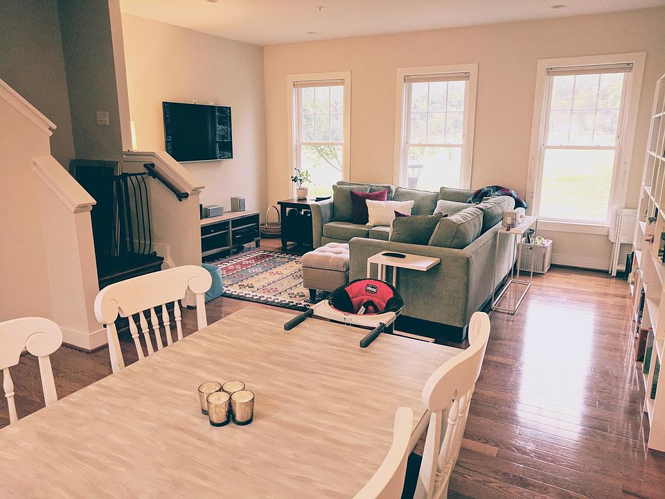 Catholic University. Modern yet DC classic row house high end finishes through out. Walking distance to Brookland Metro Situated off 5th ST this four level townhouse is great since it has 3 BR with private baths, or a family may use the study as the 4th BR. Level 1- foyer, Study (or opt 4th BR) with 2 windows, remote operated door on two car garage, closet. Level 2-This serves as the main level. Features hardwood Floors, 1/2 bath, Open concept LR/DR, Modern Kitchen with cooking island, Granite counters, Upgraded stainless-steel appliances, Balcony w propane grill. Level 3- Master Bedrooms, double vanity Master Bath, Second BR w/ it's own en suite bathroom, full size Washer/Dryer and linen closet. Level 4 -Windows face rear and terrace faces front. Third bedroom, full bathroom, loft/den leading to roof terrace. Other features in the home: 9" ceilings on main two levels, wired for Cable TV, Internet, phone, alarm ready Nearby: Capital Bike Share, Zip Car, Red Line Metro, Monroe Street Market, Metropolitan Branch Trail, Tot Playground. Tenant pays utilities. All applicants screened for credit, employment and rental references. Minimum income requirement $150,000. Pre-approved pets and additional pet deposit.