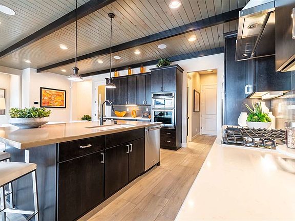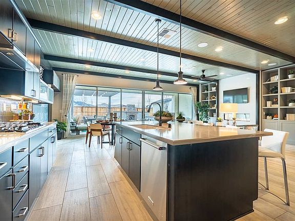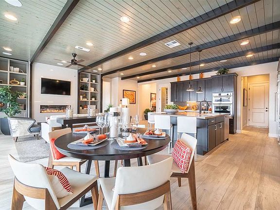 Talk about a wonderful modern twist to update the open concept single level home. This former model home comes completely furnished and ready for an owner that wants to enjoy the most out of the home and the area. Extremely functional use of space allows for cross over in areas. Great room with an elongated fireplace invites conversation or to gather to watch tv. Although there are technically 3 garage bays, 1 is currently a "man cave" complete with tv. Toll pulled no punches with the design or finishes.