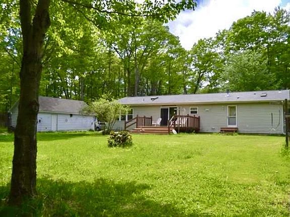 Affordable country living. This 3 bedroom, 2 bath home is located on a nicely wooded lot across the road from Crescent Lake. Features include a formal dining room or den, master suite with separate tub and shower, and open kitchen, dining room, and living room with a patio door leading to a deck and main floor laundry room. The unfinished basement is poured concrete and is insulated. There is a one car detached garage with a large backyard. This is a comfortable home that is ready to be yours. Updates include: new furnace, electric hot water heater, tread on basement steps, cedar closet in basement, carpet in bedroom, garage door and side door, well pump, hail proof sky lights, and gutters with guards. As well as new refrigerator, stove, dishwasher, and washer and dryer.