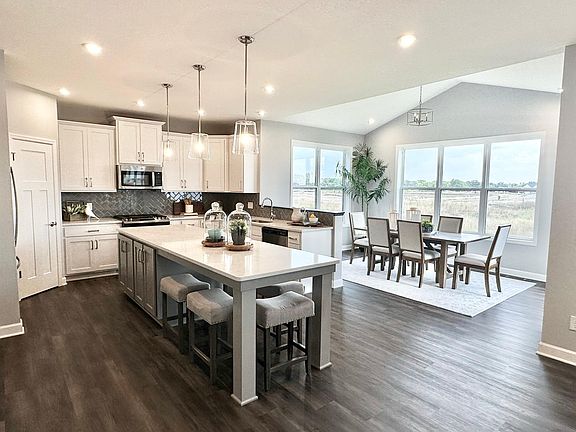 The Taylor plan with popular morning room on a walk-out homesite is sure to check all your boxes! The home features an open concept with well appointed kitchen including white cabinetry, beautiful quartz countertops, tile backsplash, and stainless steel appliances. The center island has been extended for more storage, seating, and prep space. The home includes the popular morning room option that can accommodate a large dining table making entertaining easy! Durable luxury vinyl plank flooring is throughout the main level. The main level flex room has glass double doors and can be a transitional space utilized for a home office or play area. The luxurious owner’s suite welcomes you with large windows, a spacious walk-in closet, quartz countertops, a lovely tiled shower, and large linen cabinet. Convenient upper level laundry is steps away from the secondary bedrooms. Future expansion in the unfinished walkout basement. Community includes a pool & clubhouse ready Summer '24.