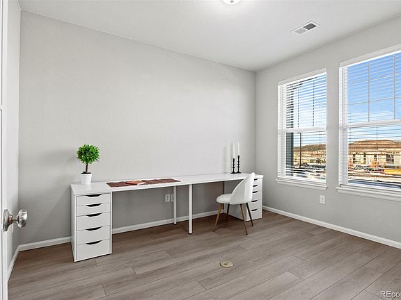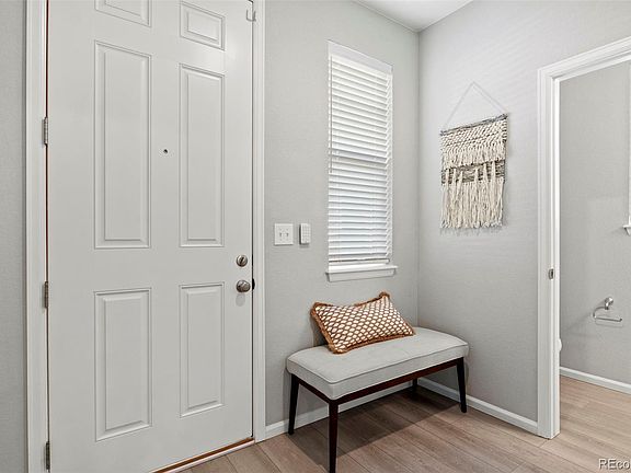 This home has UPGRADES. Expanded kitchen, living and primary bedroom. It is the larger model built by KB. Double ovens, gas range, large kitchen island, dining room, media closet for living room tv, fully finished 2 car garage with insulation, epoxy and heater, upstairs laundry, luxury vinyl plank flooring throughout. Turf was installed in yard within last 6 months. East facing, walking distance to several businesses as well as the Colorado Early Colleges school. This home is a part of The Meadows homeowners association so owner will also have access to amenities pertaining to that.