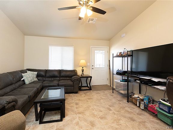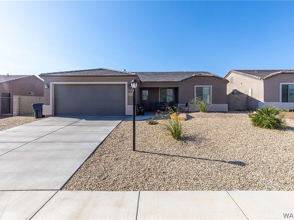 Gorgeous home located in Cerbat Vistas * This home is just like new but better*Built in 2019* Well maintained neighborhood* Excellent curb appeal with under ground utilities, decorative crushed rock , mature green shrubs and landscape boulders * Flat tile roof* quality stucco exterior* 10' RV gate with full RV parking *concrete driveway for plenty of parking*enjoyable covered front patio to enjoy a morning cup of coffee* This home has an partially open floor plan* Some upgrades include, window coverings(blinds), vaulted ceilings*20" tile throughout the home except the bedrooms (quality carpet in bedrooms), water softener, ceiling fans, contemporary neutral colors throughout, large view windows for natural lighting, 6 panel doors & dual pane windows*Spacious living room* dining area off of the kitchen with a sliding glass door to the rear covered patio* Kitchen features some appliances(glass top stove/oven, dishwasher & microwave), breakfast bar, food pantry*relax in your King-size owners suite with quality like newer carpet & huge walk in closet w/shelves* owners suite bathroom features a walk -in shower w/upgraded glass shower door, * 2 spacious guest bedrooms ** full size guest bathroom (tub/shower)*Indoor laundry room* spacious 2 finished garage*garage door opener and remotes** rear patio, perfect for entertaining * rear yard has decorative rock and a 8' x12' storage building* So whether you enjoy most your time indoors or outdoors this home will be great* close to many riding trails for off road vehicles* Low annual taxes ,LOW HOA $10 a month and a great, well-kept neighborhood*