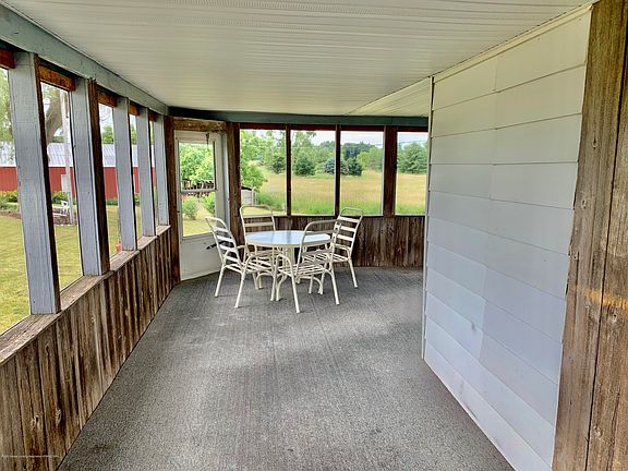 Spacious Farmhouse on 2.3 country acres! Enjoy the peace and quiet on the large screened porch. Living Room has neutral carpeting, sunny Dining Room features a bay window. Oak Kitchen with appliances, pantry cabinet and lazy suzanne cabinet. lst floor Master Bedroom, 2nd Bedroom and cozy loft area upstairs. 2 car detached Garage plus a hip roof Barn with lean toos. Great change to enjoy country life at an affordable price!