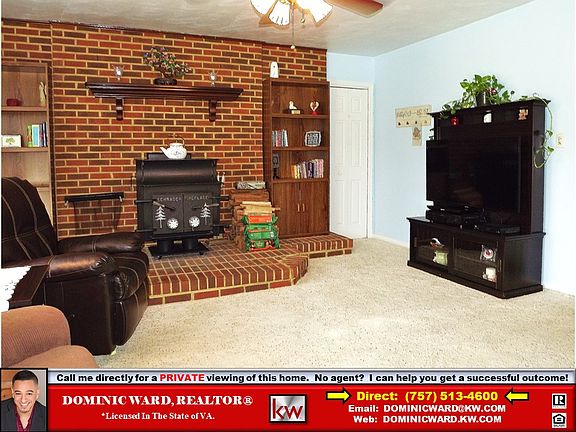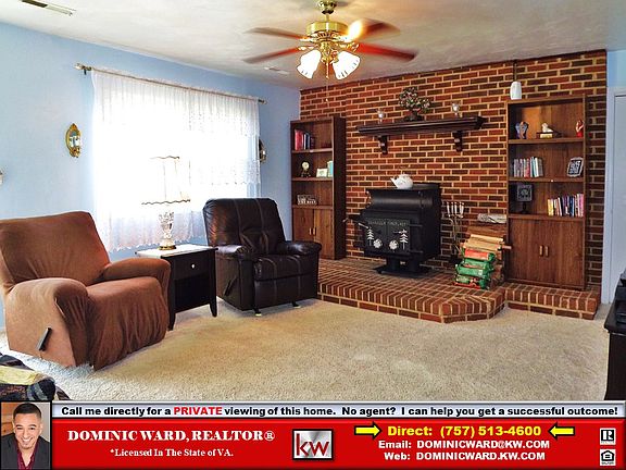 Looking for a well cared for ranch style brick home...you have found it! This little treasure is nestled near the end of a serene street that has a direct walking path to Deep Creek High. This home has been well cared for by the ORIGINAL owners for more than 40 years! There's potential for 2 cozy master bedrooms, as 2 bedrooms have direct access to a strategically placed 1/2 bathroom. The wood stove, in the spacious family room, is bordered by a beautiful brick wall, and the updated kitchen has a great amount of cabinet space. The eat-in kitchen easily fits many table sizes, and has french doors leading to the back deck. The roof is 6 years "young" w/ 50 yr. shingles, the water heater (4 years young), and the kitchen was completely updated 7-8 years ago (cabinets, flooring, and hardware). The french doors are 4 years "young", and the side garage door is BRAND NEW. There's nearby highways for an easy commute! Quick, take advantage of this great opportunity & make this your home!