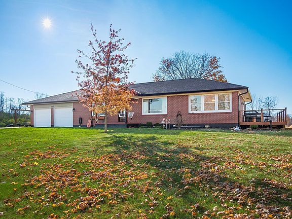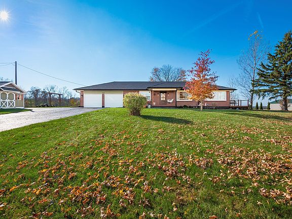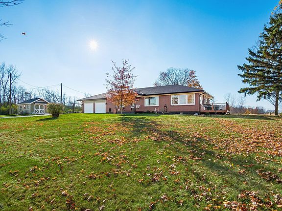 Own a true piece of paradise! This stunning, brick, ranch sits on a full acre of land, surrounded by amazing farmland views. Walk into the large, open living room that is offset by a multi-purpose/sunroom room with tons of windows. The updated kitchen offers an eat-in space and has been fully updated with brand new cabinets, countertops, backsplash and appliances. Down the hall, you will find two bedrooms and a fully updated bath. Off the multi-purpose room, there is an additional space perfect for an office or 3rd bedroom. Outdoors, you will find a detached 3rd car garage as well as a shed and chicken coop. Lots of entertaining space on the updated deck or pergola area.