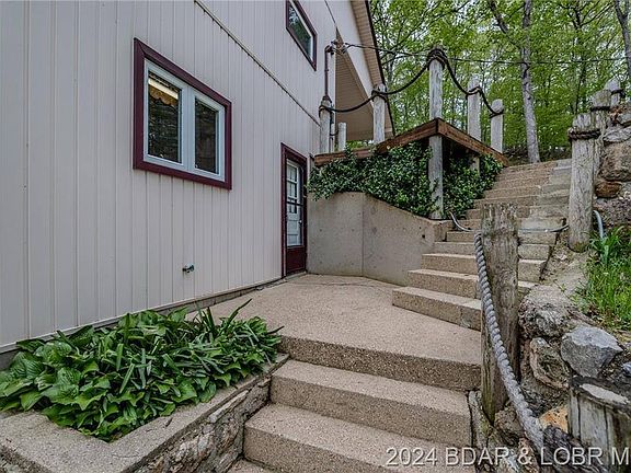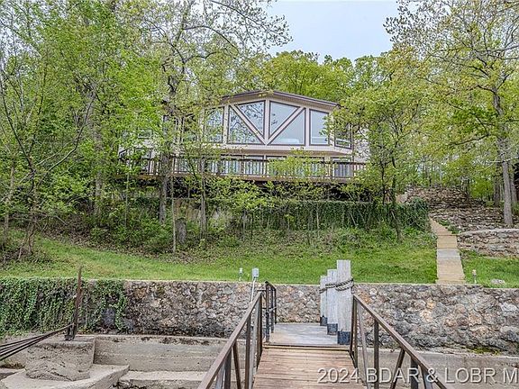 WOW, What a View! Located in Soap Creek Cove in the Gravois Arm. As you descend to the lower level you are greeted by a warm and inviting interior, with stone fireplace, wood walls and flooded with natural light. The open-concept living space is designed for both relaxation and entertaining. The master suite connects to a gorgeous sitting room/office, featuring beautiful wood work and stunning views of the lake. Additional bedrooms provide ample space for family and guests. Enjoy your morning coffee on the expansive deck or relax in the evenings after a fun filled day on lake. This home is in a private setting, situated at the end of the road with no thru traffic. Did I mention the OVERSIZED, 45x24 attached garage, with room to store all of your toys and vehicles. Great location by land and close to many popular waterfront establishments. Come see this one! Please reach out to the listing agent, Jodi Hendrix with any questions you many have.A