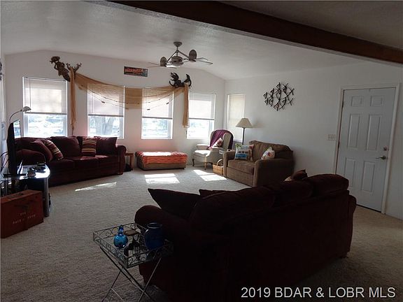 MOVE IN READY is what this CUTE CUTE lake place is. LOCATED in the clear waters of the Gravois Arm in Soap Creek Cove. Year around water for the guy who likes to fish year around 23 - 25 ft of water under the dock at full pool per owner. Many up dates have already been done. Extra large great room that will sleep several. Large deck for entertaining and to see the beautiful views. Furnished with all the of the lake decor. 35x16 shop with 1/2 bath that has 2 new heat/air units and could be converted to living quarters easy enough. Covered lakeside patio, fire pit with cabana room with refrigerator and bar area that is great for fun evenings outside. Nice two well dock and 2/hoists. On the Gravois Sewer District so never any worries about septic issues. You will not be disappointment with the pride of ownership int his property.
