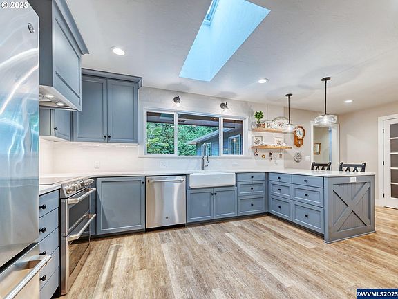 Sitting between Lebanon and Sweet Home, this fully remodeled single-level home on 2+ acres has room for toys & animals. Professionally designed & executed updates include a swoon-worthy light filled kitchen w/ quartz counters, SS appliances, farm sink, custom cabinets & coffee bar. Luxury vinyl flooring, plantation shutters, cozy wood FP, & forced air heating/cooling. Outside you'll find a newer roof/gutters, spectacular covered paver-patio w/ ceiling fans & recessed lighting, vinyl fencing, RV port.