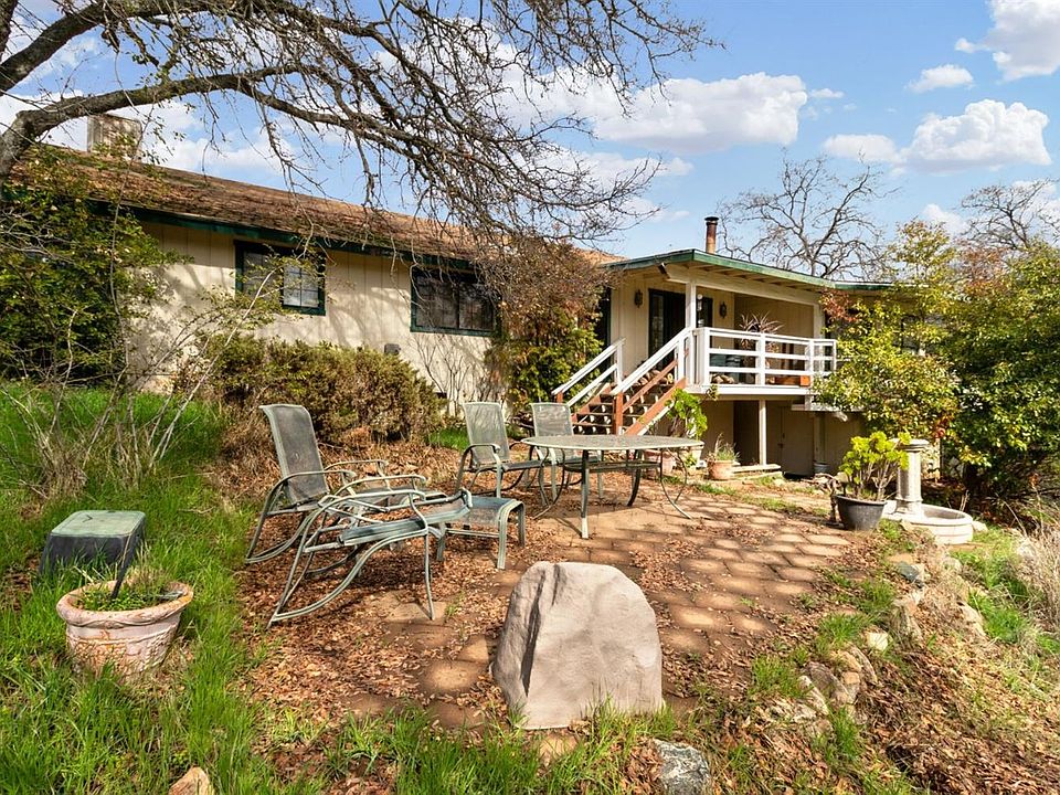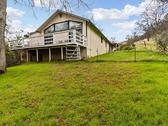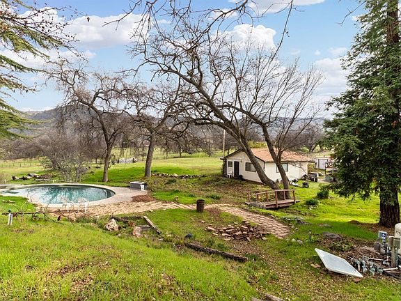 Awesome location in lower foothills just 15 minutes from 168 freeway entrance. 8 beautiful acresw/main home + pool house w/kitchenette & separate rooms + old 2bd/1.5 ba mobile home.So much potential. Pebble tec pool set amongst the trees. The home sits atop the overlooking property. There's storage under the home too. House has a large living room w/2 sliders to the large deck. An adorable bedroom sits off the LR and the other two huge bedrooms are located at other end of home. Kitchen & dining are in the center of home. Mountain views add to the beauty of this unique property. Just needs some TLC and being sold with no repairs.