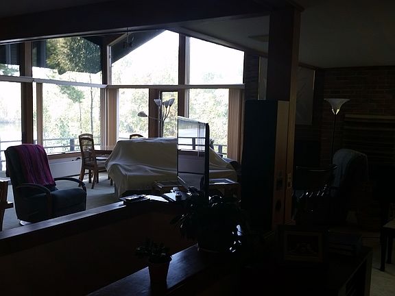 Contemporary home with valted ceilings, large windows and designed by a student of Frank Loyd Wright. Incredible views of the 7 acre private lake completely within the boundaries of the property. 60 rolling acres of woods and even some beautiful fields. A half acre natural beach with beach volleyball court provides wonderful lake front experiences. A 5 stall, 1200 sq. ft. horse barn is excellent for animals, storage and parties. There is additional 1200 square feet in the second story of the barn.