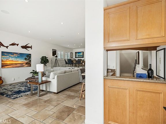 Exquisite residence offers a seamless blend of coastal elegance & modern luxury. Secluded patio beckons you to savor life’s simple moments overlooking the channel, harbor & wetlands. Wake up to unobstructed sunrises, soak in the sunsets, & enjoy boat parades & fireworks from the comfort of your own home. Open-concept floor plan with high ceilings invites natural light to fill the home, creating an airy & inviting ambiance. Large slider in the living room frames the captivating waterfront. A gas fireplace adds warmth & convenience with an automatic starter. Full wet bar ensures effortless entertaining. Spacious dining room with white oak floors & a glass railing to maintain an open flow. The gourmet kitchen is a culinary dream featuring quality cabinets, granite countertops, under cabinet lighting, Viking appliances, & a breakfast bar that opens to the den area—a perfect spot for gatherings. The den can be versatile; TV room, entertainment space, office or converted into a third bedroom. A convenient powder room caters to guests. The stairs & top floor has recently installed premium carpet with the white oak floors underneath! The primary suite is a sanctuary, offering a soaking tub, separate shower, his-and-her sinks, & ample storage. Three full closets provide organizational bliss, one walk-in closet & two closets designed by California Closets. The private balcony grants serene water vistas. High ceilings, large slider & high windows enhance the sense of space & luxury. The second bedroom features high ceilings, large attached bathroom with his-and-hers sinks, & a custom California Closet which ensures comfort. Some of the many upgrades completed include: LED lighting, dual pane windows, Elite filtration & water softener system, upgraded electrical panel, Tesla charger, & more! A 300 sq ft finished “storage space” lined with cabinetry & shelving for storage. A large attached 2-car garage with epoxy flooring has an abundance of storage. Bayport itself is undergoing a $2-million renovation, with modernized exteriors, upgraded balconies, & railings. The community pool & spa offer relaxation, a sport court for exercise, community club house for parties & a scenic boardwalk leads you along the water. Adjacent to Peter’s Landing, Bayport enjoys proximity to local restaurants, shopping outlets, & the Freedom Boat Club. Cross Pacific Coast Highway (PCH), pass the iconic Water Tower, & discover the picturesque Sunset Beach—a true waterfront lifestyle awaits!