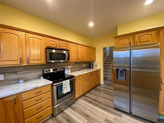 Come enjoy in-town living without the noise. Home recently had the siding replaced, and a new roof was just installed. Full 2 story home with finished basement. 4 bedrooms/4 bathrooms, 2 living rooms, 1 with wood fireplace and 1 with gas fireplace. Attached heated 3 car garage. Awesome views from most of the rooms. 9 foot ceilings, lots of updates. Waking distance to the paved bike trail. The best sunsets visible off the huge wrap around deck.