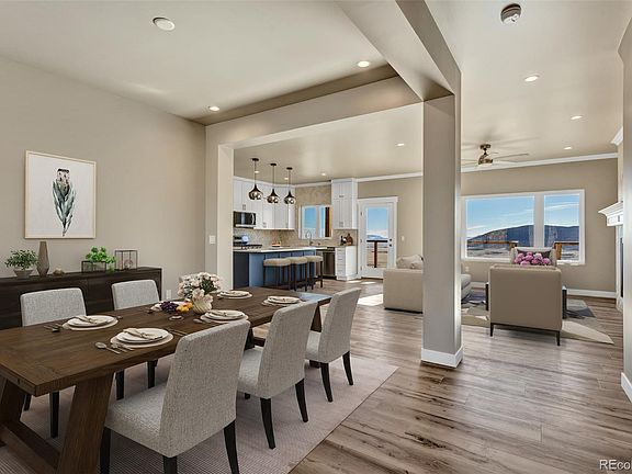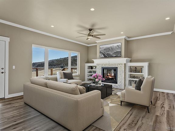 Experience the perfect blend of high-country comfort, panoramic views, and year-round recreation. This new home offers sun-filled open-concept living and designer finishes in a private mountain community. Wake each morning to breathtaking sunrises and expansive mountain and valley views from every room. Enjoy easy access to private trails and fishing, and fill your weekends skiing Breckenridge, rafting Buena Vista, soaking at Mount Princeton, or exploring Salida’s historic downtown—all within a comfortable drive. This thoughtfully planned 4-BDR, 2.5-BA home features high ceilings, crown molding, recessed lighting, Bentley gas fireplace flanked by custom bookshelves and mantle, a flexible loft, and a mudroom with built-in gear storage—each designed to support comfort and active mountain lifestyles. At the heart of the home, the kitchen, dining, and living spaces connect seamlessly, opening directly to the covered deck for true indoor-outdoor living. A large island anchors the space, complemented by floor-to-ceiling soft-close cabinetry with smart organizers, a walk-in pantry, Carrara Mist quartz countertops, Fireclay farmhouse sink, stainless-steel appliances, and a smart touch faucet. The result is a clean, efficient workspace that brings prep, cooking, and gathering together. The main-level primary suite features a walk-in closet with custom shelving and an en-suite bath with dual vanity, quartz counters, frameless glass shower, private water closet, and modern fixtures. Throughout the home, storage solutions, thoughtful circulation, and smart planning enhance everyday living. Resting on 1.25 acres of open landscape with protected views, outdoor space includes a covered deck ideal for dining, relaxing, and wildlife viewing. An attached 2-car garage makes daily comings and goings effortless, and with private trails and 7 stocked fishing ponds close by, it’s easy to hike, bike, fish, or explore snowy terrain without ever loading the car.