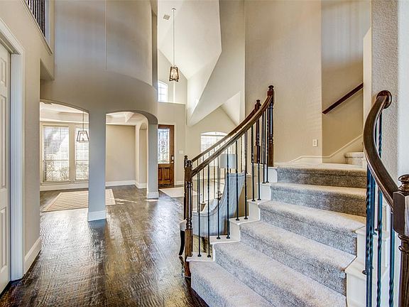 GOLF COURSE LOT IN GENTLE CREEK ESTATES WITH A WIDE OPEN VIEW OF THE 8th FAIRWAY!! This home's interior is just like new with $55,000 spent on paint & carpet, beautiful hard wood floors, NEW oven & stove, microwave, counter tops & subway tile PLUS a wine bar & wine fridge. Formal Dining, Formal living & study off of entry. MASTER & ONE BEDROOM DOWNSTAIRS both with ensuite baths. Master bath is just LIKE NEW! Loft area above master can serve as a workout room! Upstairs is 3 bedrooms, 2 full baths, play or game area & media room. Grand staircase, gas fireplace, giant picture windows. A rare find with so much space inside & out! COME RELAX & ENJOY the VIEW! Prosper ISD. Check out Gentle Creek Golf Club & Pool.