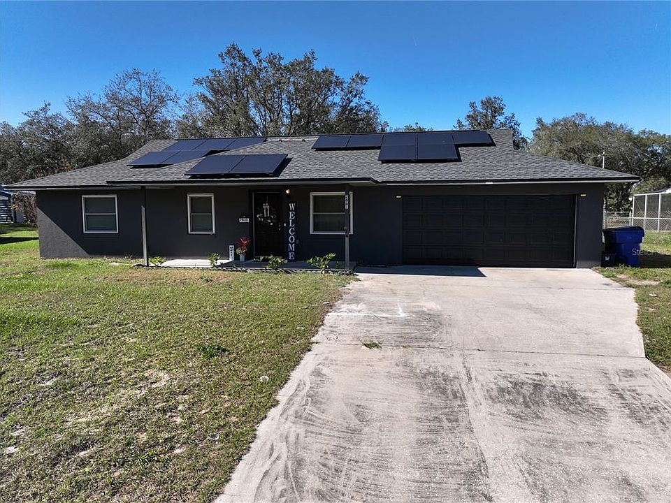 Updated spacious Home ,3 large Bedrooms, 2 Bath, and a 2 Car garage. Kitchen features lots of cabinet space, granite counter tops and breakfast bar. Master Bedroom has a walk-in closet, new vinyl plank floor and all bedrooms, tiled kitchen, bathrooms and living room, new painting inside and out. New roof, newer ac, this place is ready to move in! Relax and Enjoy the spacious Screened c Back porch. Fenced in Back yard with a storage shed. Located conveniently close to , Schools, Shopping, and restaurants. This home has so many great amenities. You do not want to miss out on this home! close to Lake Olivia has a sidewalk around the entire lake, fishing dock, and a boat ramp where you can enjoy after a long work day!. SOLAR PANELS TO BE TRANSFERED AND BE PAID BY BUYER AT CLOSING.