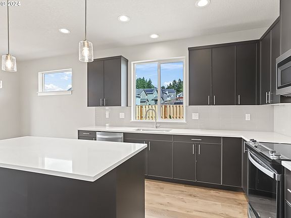 This exceptional floorplan boasts 3 bedrooms and a versatile den, making the Rock Creek plan on Lot 32 both open and airy while providing ample space for comfortable living. The primary suite is a true retreat, featuring a luxurious soaking tub, a separate shower, double sinks, and a spacious walk-in closet. A vaulted den off the entry offers an ideal setting for a home office. The covered patio adjacent to the dining area is perfect for outdoor relaxation and entertaining. With a fenced backyard, full landscaping, and a tandem 3-car garage, this home combines style and functionality for modern living. ATTACHED PHOTOS ARE FOR EXAMPLE PURPOSES ONLY, FINISHES MAY VARY.Washers,Dryers and Refrigerators are not included.