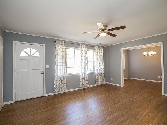 Updated one level full brick home! Move in ready! Restored hardwoods, Granite kitchen built in oven & new cook top with vent hood, new dishwasher & stainless steel sink. Brand new tile in kitchen & laundry. Fresh paint throughout home. New ceiling fans & light fixtures, faucets, carpet, HW tank & disposal. Huge laundry/mud-room. Fully fenced yard & electric garage opener. Built in 1959 & 1242 sq ft per Court House. Call/text Sherri for additional information @ 918-724-5008!