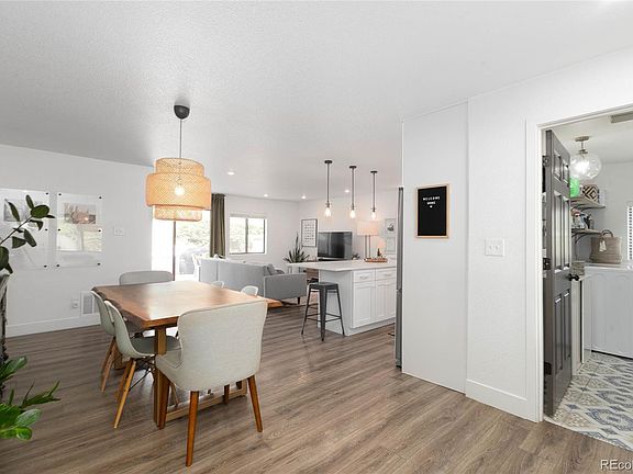 Welcome to this beautiful home nestled in the desirable neighborhood of University Hills. This property offers an array of features that will make you feel right at home. Step inside to discover an open and airy layout flooded with natural light, creating a bright and inviting atmosphere. The spacious living area is perfect for relaxation & entertainment, while the large kitchen island with seating serves as a central hub for gatherings and culinary adventures. The kitchen showcases high-end and unique finishes, including white shaker soft-close cabinets, a designer herringbone blue glass backsplash, and beautiful pendant & recessed lighting. Stainless steel appliances complement the sleek & modern aesthetic. This home offers 3 bedrooms and 2 baths, providing ample space for comfortable living. The primary bedroom is a serene retreat, featuring an ensuite bathroom with a large soaking tub and lots of natural light—a perfect oasis for relaxation & rejuvenation. The property boasts a large backyard, complete with a shed for additional storage. Enjoy outdoor living on the paved patio, perfect for barbecues or unwinding after a long day. Garden beds offer the opportunity to cultivate your own green sanctuary. Practicality meets convenience with a laundry room & drop zone conveniently located off the garage. Additional highlights include wide plank gray flooring, a brand new water heater, and a NEST thermostat for efficient & comfortable living. Located with easy access to I-25, this home offers seamless connectivity to the greater Denver area & beyond. Whether you're commuting or exploring the city, this location provides the ideal balance between accessibility & tranquility. Don't miss out on the opportunity to own this exceptional home in University Hills. The combination of its attractive features, high-end finishes, and welcoming ambiance creates a truly captivating living experience. *Don't miss the drone video tour of this beautiful home!