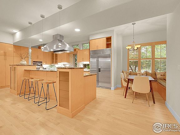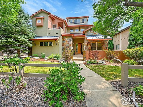 Architectural Elegance Meets Modern Comfort in this Indian Peaks West Home. This custom-built, one-of-a-kind residence features a unique, modern floor plan that seamlessly blends an innovative layout with traditional touches that exude warmth and character. The heart of the home is a striking central great room that connects effortlessly to the dining area, den, breakfast nook, and kitchen, all covered in beautifully refinished hardwood maple floors and ideal for both daily living and entertaining. A sweeping, curved staircase leads to the second level, making a bold statement, freshly carpeted and flowing into newly refinished maple floors that extend throughout the connecting hallway and bedrooms. Culinary enthusiasts will be drawn to the gourmet kitchen, equipped with top-of-the-line appliances including Sub-Zero, Thermador, Viking, and GE. Enjoy cozy evenings beside one of the home's three fireplaces, one of which connects to both the great room and an outdoor patio. Step outside to one of two balconies, front and rear patios, or the third-level office/entertainment room featuring its own balcony and stunning mountain views. The lush, private backyard is a serene retreat, backing directly to manicured greenspace and a park, offering a sense of calm and seclusion. A sleek, form-meets-function solar canopy over the rear patio provides shade and extends to the west-facing roof. The 10-kilowatt Solar Array is owned and transfers with the property and maximizes the home's energy efficiency. A mix of fruit trees - including plum, pear, red cherry, honeycrisp apple, tart cherry, and red apple - brings seasonal color and flavor. In autumn, the Fire Maples along the southern boundary provide a breathtaking burst of color.This home is close to all that Old Town Lafayette & Old Town Louisville have to offer.Highly rated schools include Douglass Elementary, Platt Middle, and Centaurus HS. Connecting trails for daily recreation abound throughout the area for your enjoyment.