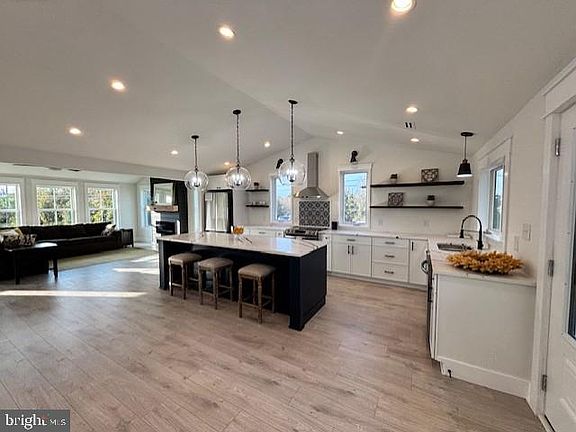 Located in a serene area of Adams County, just seconds from the Frederick County, MD state line, this fully renovated, single-story modern farmhouse is situated on 1.36 acres of scenic land. Description: Welcome to this beautifully restored modern farmhouse, set on 1.36 acres in tranquil Adams County, just moments from the Maryland state line. This single-story home has been meticulously restored inside and out, creating a bright and airy space filled with natural light and high-quality custom features throughout. Step into the open-concept living area, where an abundance of natural light pours in through oversized windows, enhancing the warm and inviting atmosphere. The focal point of the living area is a modern electric fireplace wrapped in shiplap from floor to vaulted ceiling, topped with a reclaimed wood mantel that adds a touch of rustic elegance to the contemporary setting. Flowing seamlessly into the gourmet kitchen, this space is perfect for both entertaining and daily living. The kitchen boasts a striking 10-foot island with quartz countertops, custom cabinetry, and high-end stainless steel appliances, combining style and functionality. Throughout the home, you'll find modern and durable laminate flooring that offers both style and resilience. The bathrooms feature ceramic farmhouse tile, adding a classic touch to the modern updates and ensuring durability. The powder room is thoughtfully designed with a sliding pocket door to maximize space. The master suite serves as a serene retreat filled with natural light, featuring vaulted ceilings, a spacious walk-in closet, and a spa-like en-suite bathroom. The master bath is designed with a large enclosed glass shower with marble-look tile and a double vanity, combining luxury with practicality. Two additional bedrooms provide generous space, each filled with natural light that enhances their spacious feel. One of the bedrooms includes a cozy reading nook, perfect for quiet moments or enjoying a good book. A stylish and modern sliding barn door separates the laundry room from the main living space, adding both charm and functionality. The home comes equipped with a newly installed energy-efficient heat pump for year-round comfort. Beneath the main floor, you’ll find an unfinished basement, offering excellent storage or the opportunity to create additional living space. The one-car garage is conveniently located underneath the home, providing easy access and extra storage. Outdoor Oasis: The exterior features a large, covered front porch and a spacious 500 sq. ft. Trex deck with modern cable railing that wraps around the deck and porch, providing a stylish and safe space for outdoor enjoyment. Set on 1.36 acres, this property offers expansive outdoor space, perfect for relaxation and enjoying nature. With plenty of room to create your own outdoor paradise, it’s an ideal setting for both tranquil solitude and vibrant outdoor gatherings. This bright and airy modern farmhouse, beautifully restored inside and out, offers a perfect blend of modern comfort and rustic charm. Located just seconds from the Frederick County, MD state line, this home provides a serene setting with easy access to nearby amenities. Schedule your private tour today and discover this exceptional property! Agent is related to the seller.