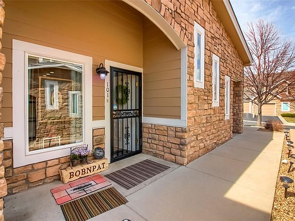 BEAUTIFUL ONE LEVEL LIVING. ON RANCH CREEK GOLF COURSE! TAKE A LOOK AT THIS UPDATED HOME! END UNIT! Overlooks a PRO TEE so safe from window breakage! MANY NEW UPDATES! KITCHEN CABINETS were refaced & new DOUBLE KITCHEN SINKS=2017. GRANITE Tile Kitchen Counters. Laminate WOOD look flooring & new carpet=2017. HUNTER-DOUGLAS shades in Living room (Motorized) & Master bed (Pull). Living room GAS FIREPLACE & VIEW OF THE GOLF COURSE! Sit out on the porch and SEE the BEAUTIFUL course & stroll the WALK PATH. Front & back Security Doors. LOCATED NEAR Shopping, Restaurants, Transportation! Easy Access to Boulder, Denver, DIA and Freeways to everywhere you need to go. TONS OF STORAGE in GARAGE! ADA COMPLIANT CONDO & enjoy the large doorways! H20=2016. Refrigerator= 2018. Stove-Washer-Dryer=2016 Complex Roof=2018. $1000 PAINT CONCESSION FOR THE BUYER OR USE AS YOU WOULD LIKE.