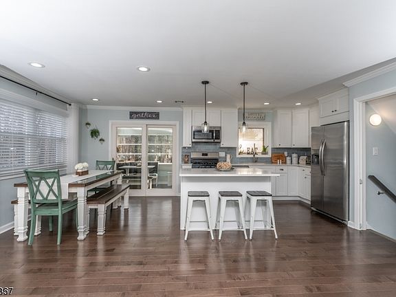 Pack your bags! You will love this updated split the minute you step in! Enter into the open space with wood floors and streaming natural light from a large front bay window.Living room, dining room & sparkling kitchen offer spacious flow for quiet meals, or entertaining. Kitchen shines w/white cabinets, pendants, island w/storage & seating, SS appliances & pale blue subway tiles. The glass door to adjacent room filled w/windows perfect for office or sunroom! Upstairs to 3 bedrooms w/wood floors & updated full bath. Downstairs a family room w/space to gather, full bath & access to yard or garage. Brightly lit, finished lower level boasts large recreation space to use as you wish. Media room, gym, playroom, guest space! Private yard with new fence, paver patio & gazebo is ready for spring. Brand new roof!