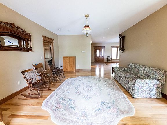 Pay attention to detail with this amazing home on over 3 acres with over 300+ feet of shoreline. Enter into the huge concrete covered porch with beautiful hickory hardwood floors & amazing wide trim that jumps out at you. A gourmet kitchen with a BK bar & one-of-a-kind custom center island with granite counter tops & double oven. Relax & enjoy the breathtaking views of the lake in the large sitting room with several windows. Step into your family room with a gas fireplace for the extra warmth on a chilly day. The Master bedroom has a private ensuite that offers a walk in tub & a corner shower as well as a laundry room. Downstairs has more to offer with a full basement walkout & the walls all sheetrocked & painted-awaits your choice of flooring & lid when you're ready. Poured walls and the entire home is spray foamed to maintain your perfect comfort level of temperature throughout. You can boat to the bar on the lake for eats & entertainment.