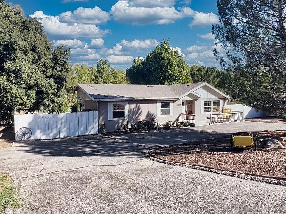 Just reduced 10/11/2023, plus a $5,000 seller to buyer credit with an accepted offer, to help with closing costs. This stunning single-story home offers skylights, a vaulted ceiling, and a stacked rock fireplace in the family room. The majority of the home offers wood laminate flooring or neutral carpeting, and there is forced air heating and cooling throughout. The back porch provides a perfect spot to enjoy the breathtaking views of the local area. With both family and living rooms, there is ample space for entertaining guests or spending quality time with loved ones. The family-style kitchen boasts a walk-in pantry, breakfast area and is ideal for storing all culinary needs. Situated on just under an acre of useable land, there is plenty of room for outdoor activities and expansion. Two 12'x10' storage sheds offer additional storage options, and there is space available for adding a detached garage. The roof is approximately a year old, ensuring the home is well-protected. For furry friends, there is a separate enclosed area with artificial turf, providing a safe and comfortable space for dogs to roam and play. An enclosed garden area with raised beds awaits the opportunity to cultivate fresh produce. Fruit trees and a mature apple tree offer an abundance of delicious fruit. This home truly combines comfort, functionality, and natural beauty, creating a place where memories are made and dreams are realized.
