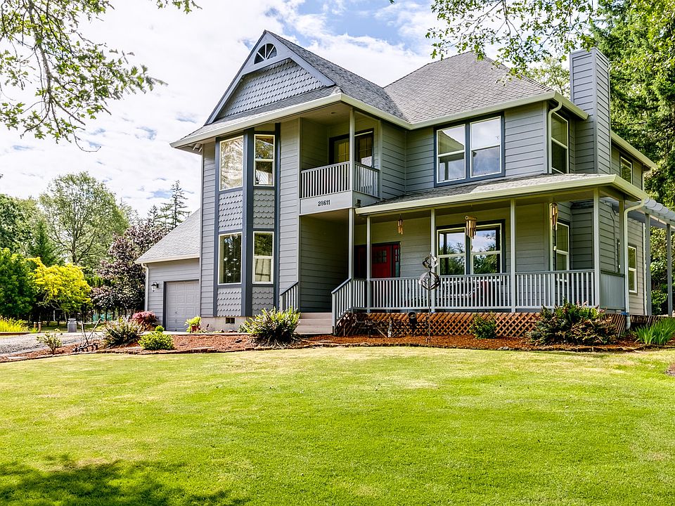 Stunning home on private park-like 2.25 acre lot! Front porch wraps around to back deck. Formal & informal living rooms & dining areas. Living room w/cozy wood fireplace. Dining room w/slider to back. Kitchen w/SS appliances, pantry, & dining area w/slider to deck. Master suite w/step in shower, WI closet, bay window, & balcony. Expansive lot w/trees, pond, & shed. Walking distance to Ridge Shores Marina.