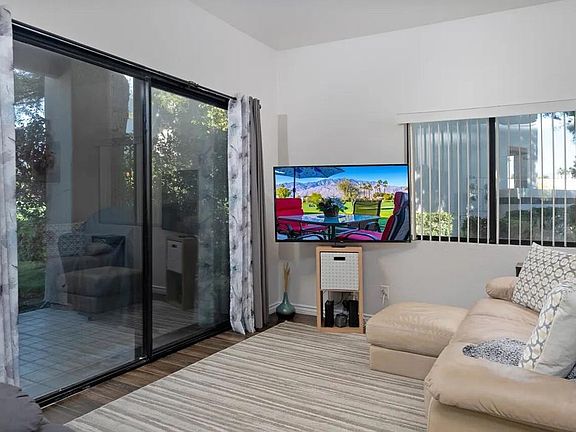 View! View! View! Introducing a stunning condo with breathtaking westward views of the mountains, ideally situated in the lovely Desert Princess in Cathedral City. This modern home has been meticulously upgraded to provide the ultimate comfort and convenience. The addition of a brand new heat pump ensures efficient climate control, while the new flooring throughout adds a touch of elegance to every room. The recent installation of a new garage door enhances both the functionality and aesthetics of the property. In 2022, the main living area was tastefully repainted, breathing new life into the space. Furthermore, the thoughtful addition of new slider tracks for the patio doors, along with fresh screens and weather stripping, emphasizes the commitment to quality and attention to detail. This condo offers a truly exceptional living experience, combining exquisite interiors with a captivating mountain backdrop, making it a rare find in this prime location. And add that the pool and jacuzzi are within 100 steps of your front door!See 'DOCUMENTS' for rental history numbers.Text Trent 760-774-1500 for all showings...24 hr notice please.