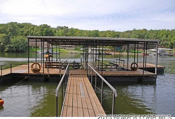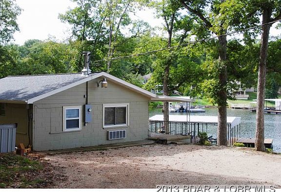 Awesome light, bright lakefront ranch style home on 95 feet of gentle lakefront. This home was updated in 2010 with all new roof structure framing and architectural shingles new windows and numerous interior upgrades. Cozy wood stove for those chilly fall evenings. Great dock with two hoist. This is an extra large deep parcel with plenty of room for expansion or additional buildings. You will love the beautiful grounds and cove. Wonderful mature trees for shade. Expansive parking with additional 20x18 metal roofed building currently used for storage that could easily be a garage or bunk house for additional sleeping.Ideal location in quiet finger cove with nice view off Soap creek in the beautiful Gravois arm. Good water depth year round.
