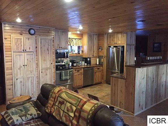Come home to relax in this beautifully updated 3 bdrm, 2 bth , split-entry walkout, on 4.42 acres with over 300' of frontage on South Twin Lake! This 'Up North' retreat features; knotty pine hickory cabinets, corian counter tops, Tile & wood flooring, as well as, a stunning rock-faced propane fireplace. Storage for toys are no problem as this home not only has an attached two car garage but the property also features a heated and insulated 28 X 40 garage with a custom made sauna! The sunsets are incredible, the landscaping in breathtaking, and the setting is private!