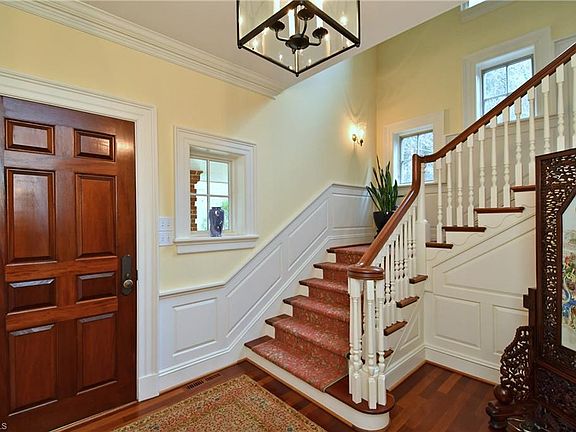 Very secluded. Long, winding tree-lined driveway leads to this masterpiece property on approx 1.8 acres bordering a creek. 3 large bedrooms (master suite on main) 4 full and 2 half baths. Upper level exercise room could be a 4th bedroom. Sitting room or upper level den w/ built-ins plus a computer center. Quality appointments throughout.