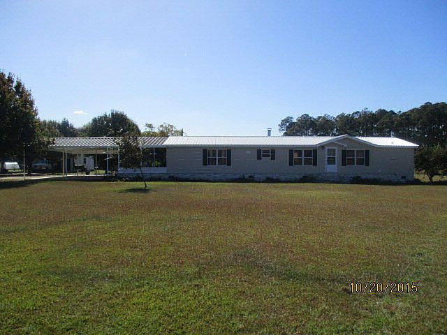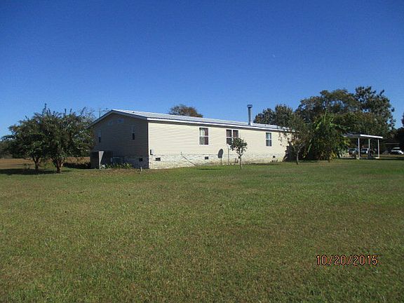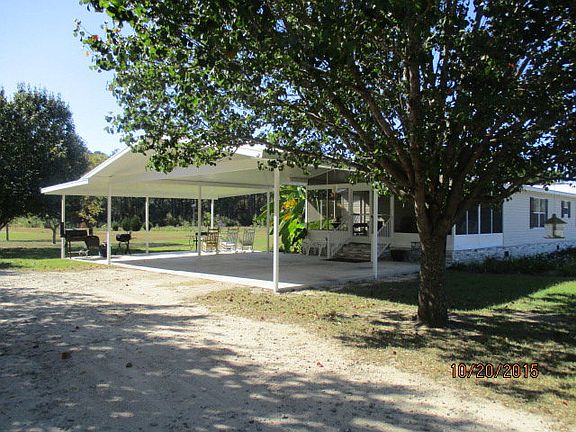 Well kept 3 bedroom 3 bath mobile home located near Odom School! Almost 6 acres of land with a pond! Hardwood flooring throughout the main areas of the house and carpet in the bedrooms. Cozy fireplace area, and large closet in the master bedroom. Nice screened patio with ceiling fans, an attached double carport, and a separate garage/storage. Schedule a tour today.
