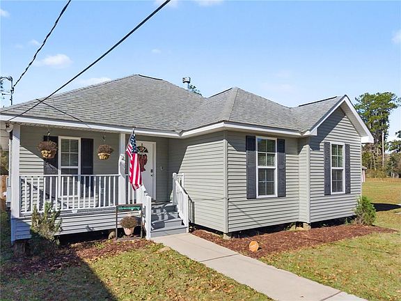 This precious home is located in Lacombe, LA with easy access to HWY 434, I-12 and 190. The home was built in 2017 and has had one owner since 2018. The open concept living room/kitchen/dining room boasts granite countertops, laminate wood flooring, wood burning fireplace (never used), stainless steal appliances, many windows overlooking the fenced backyard making the property light and bright. This split floor plan home has three bedrooms and two bathroom with spacious closets, granite in the bathrooms and comfortable carpet, featuring a tray ceiling in the primary bedroom. Both the front and backyard have a cozy covered patio for your enjoyment. This property is also on well and septic. Flood Zone X! BONUS: Sellers are including Refrigerator, Wash and Dryer!