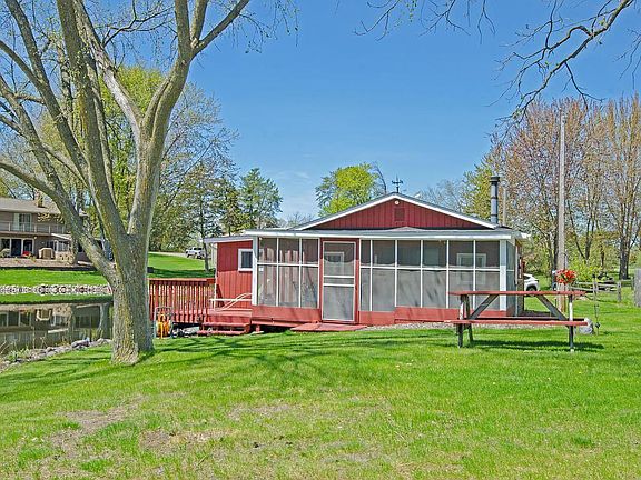 Here is your opportunity to own the peninsula on Cantlin Lake, overlooking turtle cove. This 226 +/- ft of lakeshore is south facing, allowing for panoramic sunrises and sunsets. The home is turn key for you to enjoy the summer of 2024 making memories. Whether entertaining your guests in the screened-in porch or the activities off the lake dock, the memories will last for generations. Remind your Realtor to bring fishing bait as the ice out crappies are 5 stars right now!