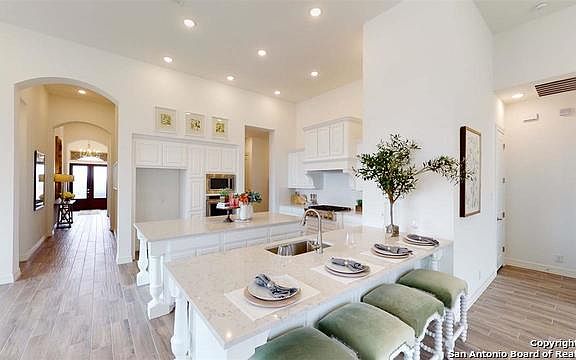 MLS# 1634461 - Built by Highland Homes - CONST. COMPLETED Feb 28 2021 ~ This home has all the elegant features to be someone's forever home. You will notice the dramatic 13 foot tall ceilings when you enter the home. This brand new Highland Home has brick entirely on all 4 sides of the home. This lot is 90 feet wide which creates lots of room between your neighbors on the left and right hand side. You can create a full media room to enjoy the latest movies or use the entertainment room as a play room or home gym. The kitchen features a unique double island concept that give the user an enormous amount of cabinets and countertop space. The 3-car garage allows for ample parking or storage for the homeowner. This home sits on a street that ends into a cul-de-sac for less traffic!