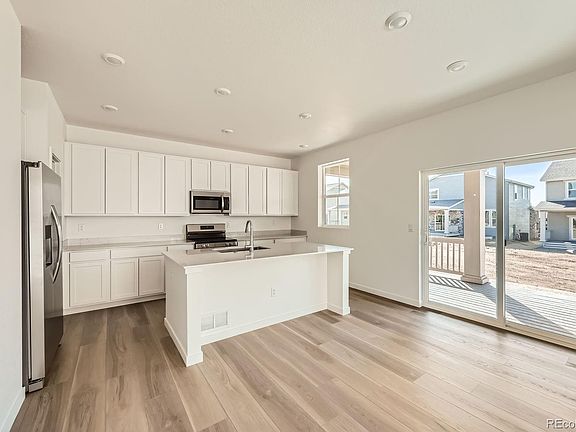 Welcome to Sky Ranch. This beautiful new Elbert 2-story features, 3 beds, 2.5 baths, laundry, great room, kitchen, dining room, unfinished basement and 2 car garage. Gorgeous upgrades and finishes throughout including a high ceiling entrance, large mudroom & pantry, luxury vinyl plank throughout the main floor, stainless steel appliances, extended covered deck and more. Lennar provides the latest in energy efficiency and state of the art technology with several fabulous floorplans to choose from. Energy efficiency, and technology/connectivity seamlessly blended with luxury to make your new house a home. Waterstone offers single family homes for every lifestyle. Close to dining, shopping, entertainment and other amenities. Don't miss your opportunity. Photos and walkthrough tour are a model only and subject to change.