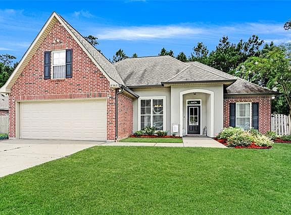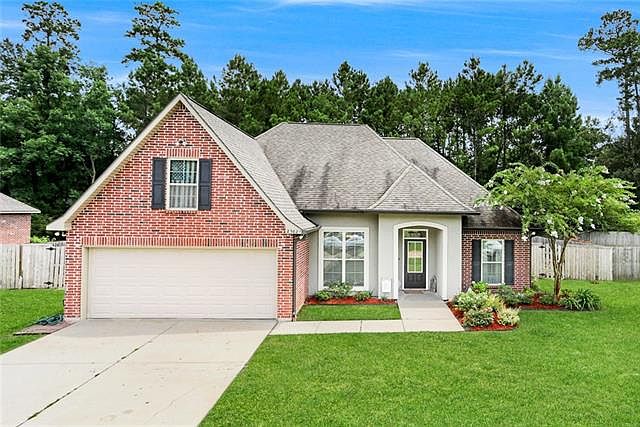 This beautiful house offers an open & split floor plan, large living area, & ample closet space. Convenient access to the covered porch encourages outside entertainment and endless hours of outdoor fun. Upgrades include 18" tile in dining, living, kitchen, hall to bed, spare bathroom, master bath, and foyer, gas stove, additional gas drop, granite countertops and granite around fireplace. Minutes away from I-12. Flood zone C. Call today to make it your home!